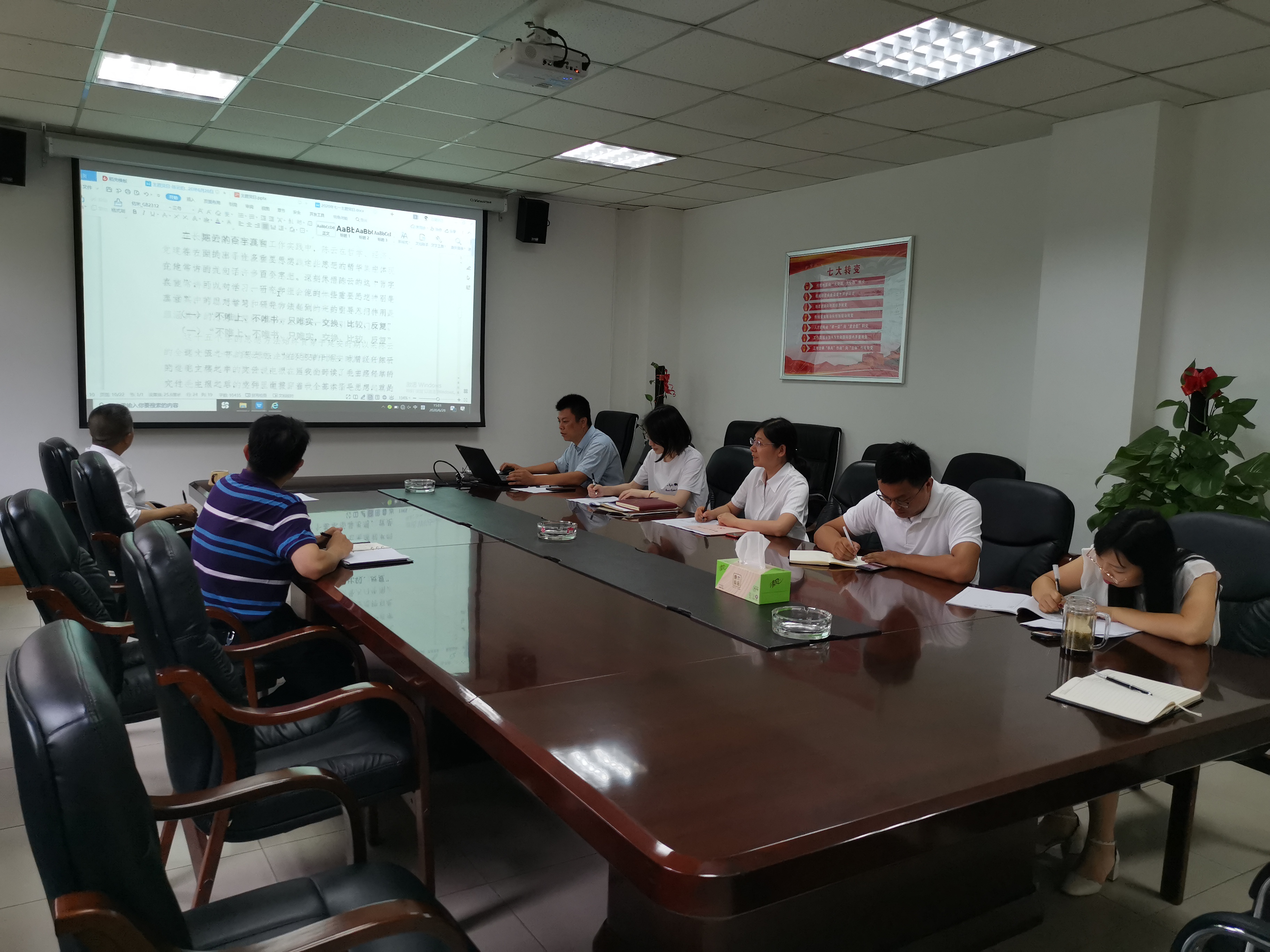 在講黨課正式開始之前,任蕊同志傳達學習中共陜西省水工環地質調查中心委員會《關于印發2020年“七一”主題黨日活動實施方案的通知》。隨后,萬曉明同志以《陳云的光輝歷程及百字真言》為題,講述了陳云同志光輝偉大的一生,帶領大家深入領會陳云同志“不唯上、不唯書、只唯實,交換、比較、反復”、“難者在弄清情況,不在決定政策”、“做大事都是從做小事開始的”、“真正為人民謀福利”等九句話、一百個字的思想精華。最后,林平選同志作總結發言,指出中國共產黨是偉大的政黨,每位黨員要愛黨、愛崗、愛自己,作為單位獨一無二的個體,要堅定理想信念,充分發揮黨員模范帶頭作用,在單位發光發熱。