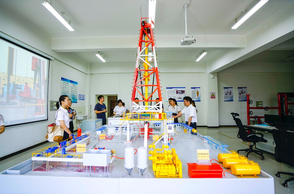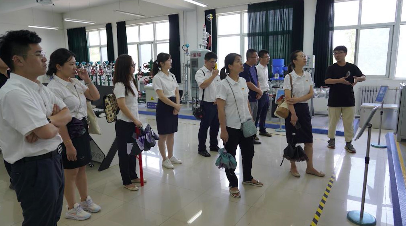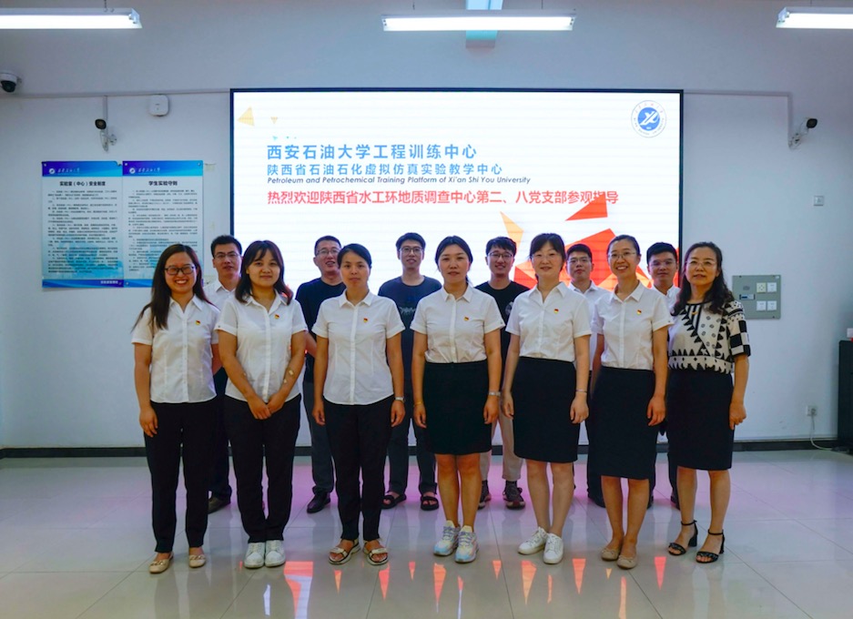 2021年7月8日下午,中共陜西省水工環地質調查中心第二、八黨支部和地熱所部分同志赴西安石油大學工程訓練中心(陜西省石油石化虛擬仿真實驗教學中心)觀摩學習。黨員同志們在學校趙老師的悉心講解下,先后參觀了地質實訓室、鉆井實訓室、采油實訓室、油氣集輸實訓室,并同講解老師進行專業方面的友好交流。在地質實訓室,同志們仔細觀看巖礦和化石標本,了解油氣儲層和油氣藏靜態地質特征與油氣田開發動態響應的內在聯系。在鉆井實訓室,同志們先是通過模型鉆機了解鉆井的設備和功能,隨后通過司鉆模擬器,觀摩完整的起下鉆過程,對于鉆井的作業有了直觀的認識。觀看教學動畫,學習了鉆機頂驅等新設備。在采油實訓室,學習游梁式、鏈條式、離心式、螺桿式抽油機的原理。在油氣集輸實訓室,同志們通過集輸流程沙盤,詳細了解油氣集輸的全部流程,特別是原油的伴熱集輸流程,該流程主要是通過換熱器將集輸管線中的原油進行加熱,降低原油粘度,保障原油冬季集輸順利。
