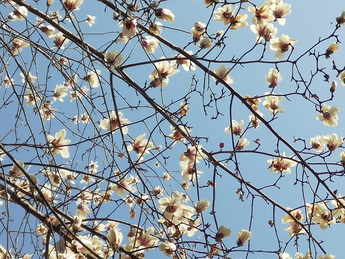 風又來了,玉蘭花在風中搖曳,滿樹的花像銀河里的星,像高天里的云。星在游動,云在漂移,生命的節(jié)拍起伏跌宕,春天沉醉在這動人的旋律里。